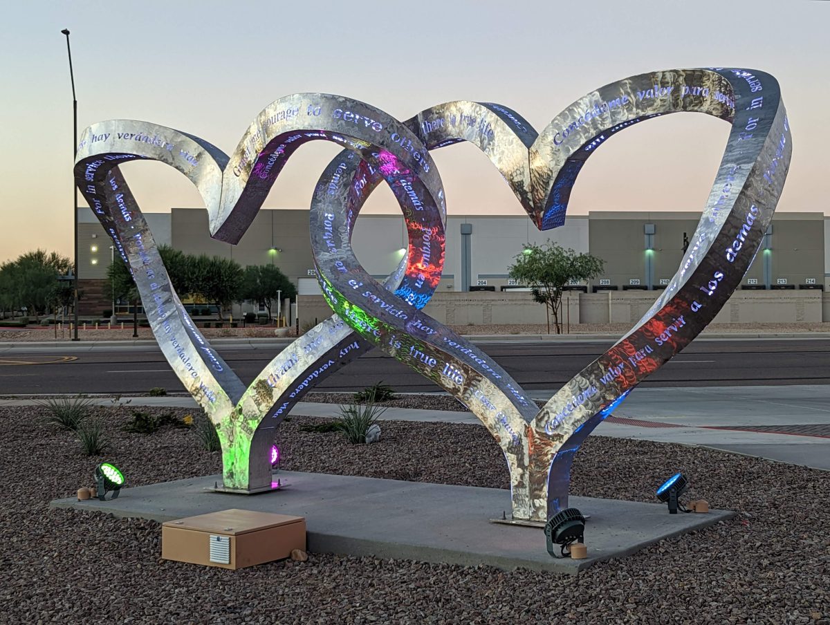 A show of love for first responders, placed outside the newly constructed Avondale Fire Station No 175, located in Avondale, AZ. The quote is from Cesar Chavez, expressed in both English and Spanish: